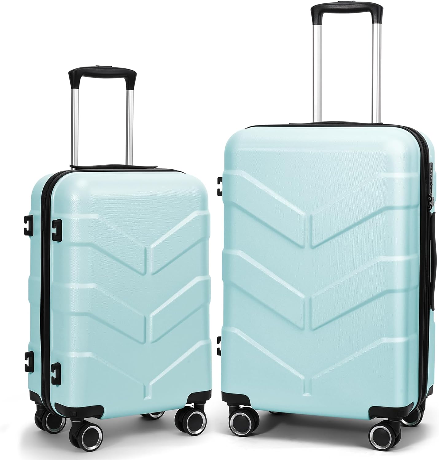 - Premium Luggage Sets: Made from brand new, extra-thick ABS hardside material, our luggage sets are lighter and lasting-longer. Featuring a textured finish for scratch resistance, they retain their beauty throughout your travels. This 2-piece luggage set includes a 20 inch carry on luggage, a 24 inch expandable check-in suitcase